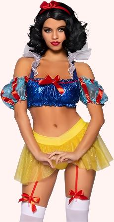3 Pc Bad Apple Snow White, Includes Shimmer Halter Bandeau With Organza Puff Sleeves And Ruffle Collar, Garter Panty With Shimmer Sheer Skirt, And Matching Bow Headband.